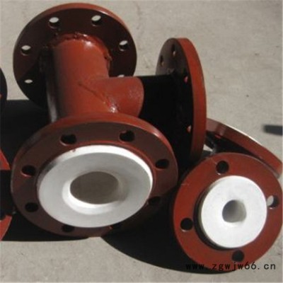 2.原理特点 2.1挤压管紧衬法 将外径略大于钢管内径的挤压四氟管用机械的方法拉人钢管内,通过自然回复使其紧贴于钢管内壁上,然后加热翻边,从各方面看,挤压管作衬里较理想,其长度可与钢管同步,整体性强,内表面光滑、洁净,易于检验,但其通径受加工设备影响,仅能加工φ300mm以下的直管。 2.2 缠绕管松衬法 将模压生产的四氟棒料,用车床切削成薄带,用手工或机械的方法将四氟薄带缠绕在预先设计好尺寸的模具上,达到要求的厚度后,再在其外用同样方法缠上三到四层无碱玻璃丝带**外层用铁丝扎紧,然后送入烧结炉成型,烧结后取出用水冷却,然后用手工或机械方法脱模,再套入钢管,翻边后即完成。