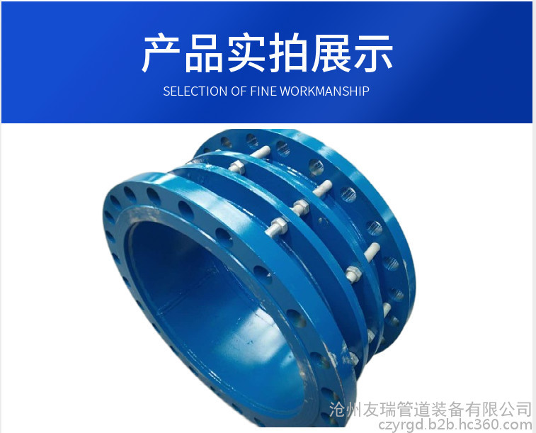 双法兰限位伸缩接头适用于两边均与法兰连接,安装时调整产品两端与法兰的连接长度,对角依次均匀拧紧压盖螺栓,再调整好限位螺母,这样**能让管道在伸缩量范围内可以来回伸缩,锁定伸缩量,确保管道运行。适用于两边均与法兰连接的管道中,安装时调节产品两端与法兰的安装长度,对角集资均匀拧紧压盖螺栓,使其成为以整体,并有一定的位移量,方便安装维修时,根据现场尺寸进行调整。在工作时可以反轴向推力传递至整个管道。能降低被连接件的压力推力(盲板力)和补偿管路安装误差,双法兰传力接头不能吸收轴向位移。双法兰传力接主要用于泵、阀门等附件的松套连接。