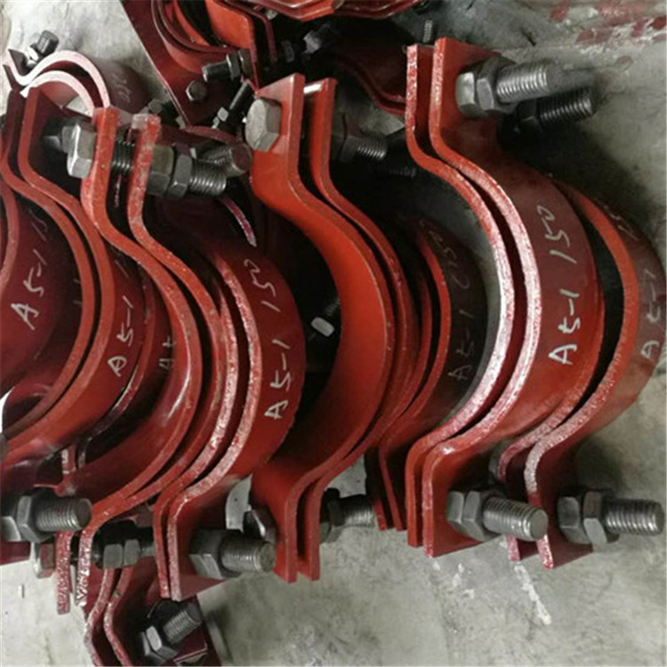 管夹包括螺栓、弹垫、盖板螺栓孔、管夹体、管夹孔、管夹孔A、管夹体螺栓孔、导轨螺母、导轨槽、导轨、平垫、盖板,其特征在于,在螺栓上依次套入弹垫、平垫,将螺栓通过盖板螺栓孔,管夹体螺栓孔后,通过导轨螺母固定在导轨上,所述的导轨槽坐落导轨螺母与导轨的联接处,其作用是防止导轨螺母在导轨上翻滚,所述的管夹体分上、下两部分,中心平行设置二个直径相等的管夹孔,操作时能一起夹紧二根管路,其内径面为多组凹槽型,凹槽型的管夹孔,能与较软的被夹管路完全符合,使管路不易产生串动移位,下管夹体与导轨上导轨螺母联接处,也有一凹槽与导轨螺母符合。双螺栓管夹标准:有A1U形螺栓,A2U形螺栓(带角钢),A3导向管卡,A4紧固管卡,A5基准型双孔螺栓管夹,A6重型双螺栓管夹,A7三螺栓管夹(保温管用),A8三螺栓管夹(支托用),A9双排螺栓管夹,A12管卡(保冷管用),A10四螺栓管夹,A11双排螺栓压紧管卡,A13双螺栓管卡(保冷管用),A14四螺栓管卡(保冷管用),A15双头螺纹吊杆,A16吊环型吊杆,A17松紧螺母,A18角形吊耳,A19U形吊耳,A20倒U形吊耳(焊接型),A21倒U形吊耳(吊杆型),A22板式吊耳,A23垫板,A24支腿加强板,A25联接板。