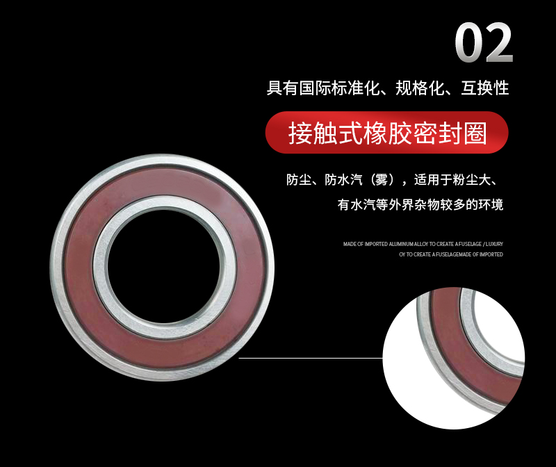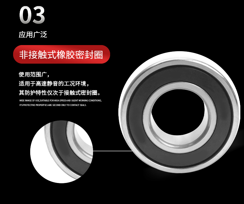 非接触式橡胶密封型:摩擦力矩小、高速性良好、脂密封性比防尘盖型好、防尘性更好、防水性能一般、温度一般在-10~+110℃;