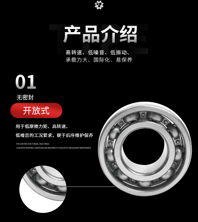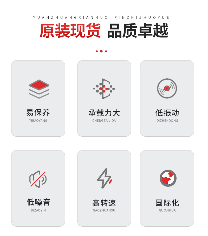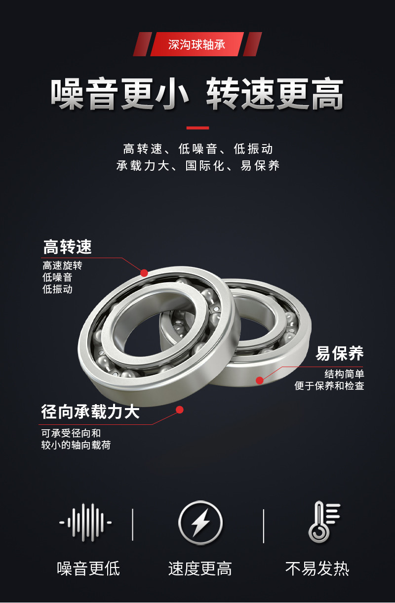高转速、低噪音、低振动、承载力大、国际化、易保养