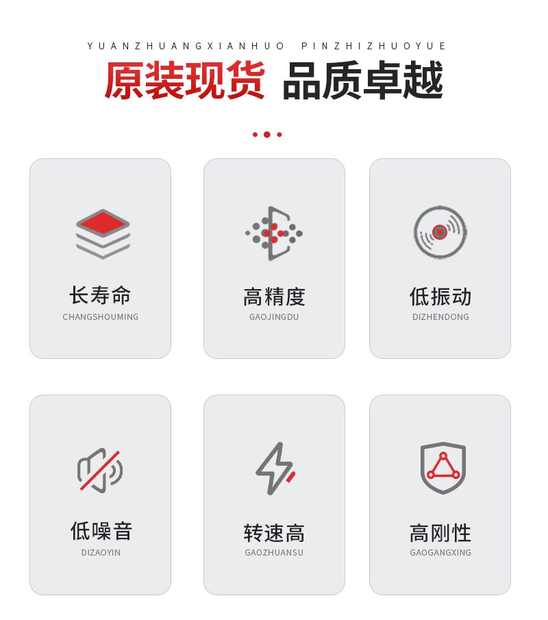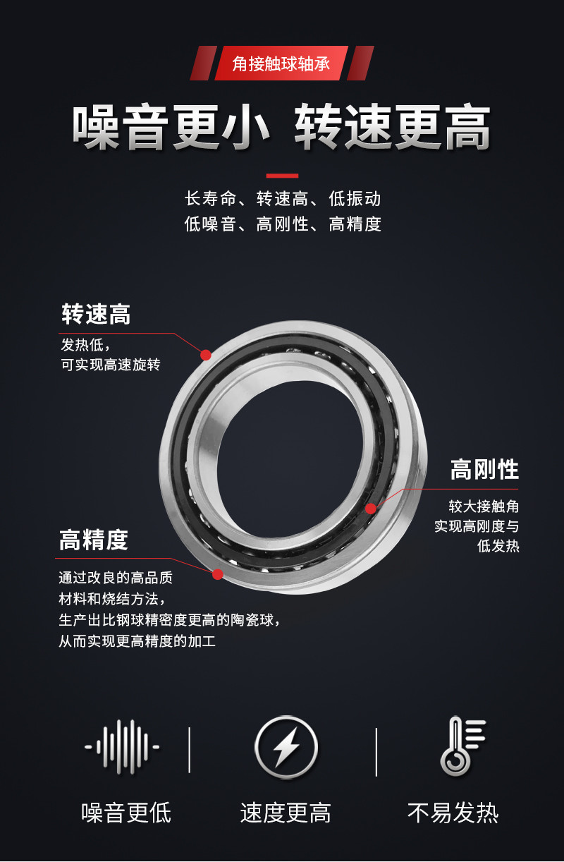 长寿命、 转速高、低振动、 低噪音、高刚性、高精度