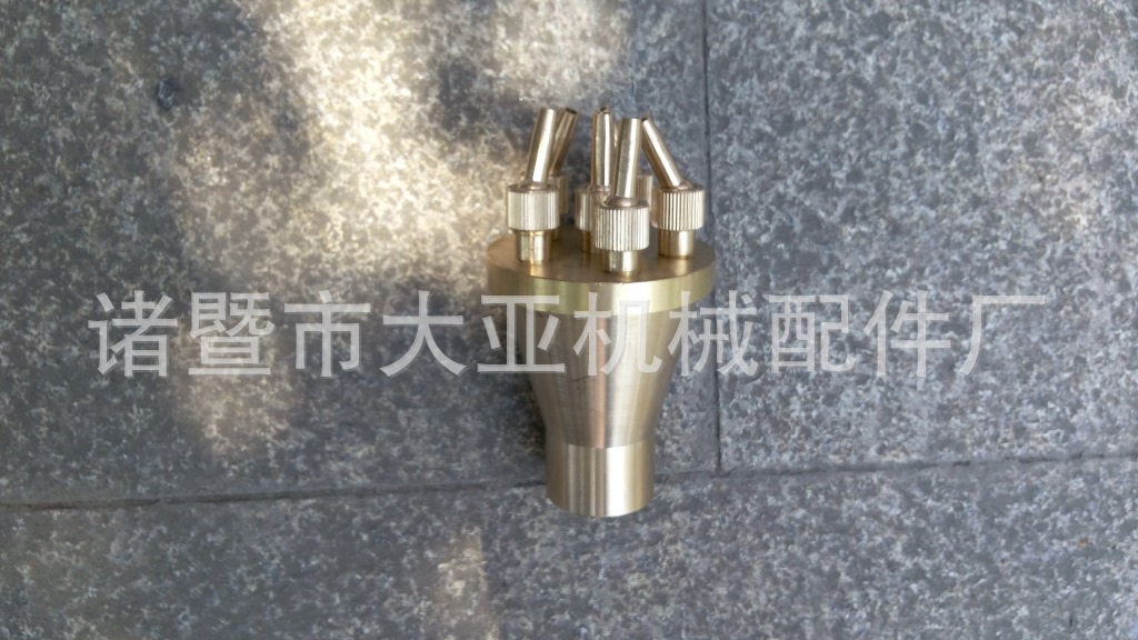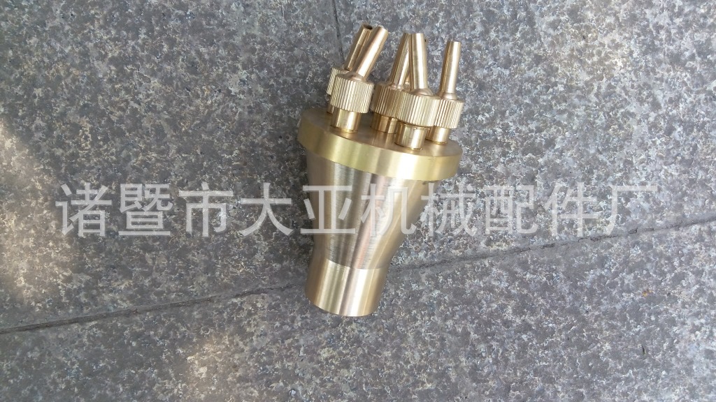 特点:这款喷头是在同一个配水室上安装许多万向直射喷嘴,这些喷嘴规格相同时,喷出的水姿雄壮笔直、粗壮美观;这些喷嘴规格不完全相同时,大小喷嘴布置得当,喷出的水姿粗壮有力、层次分明、主题突出,是大型喷泉必备的主要喷头。