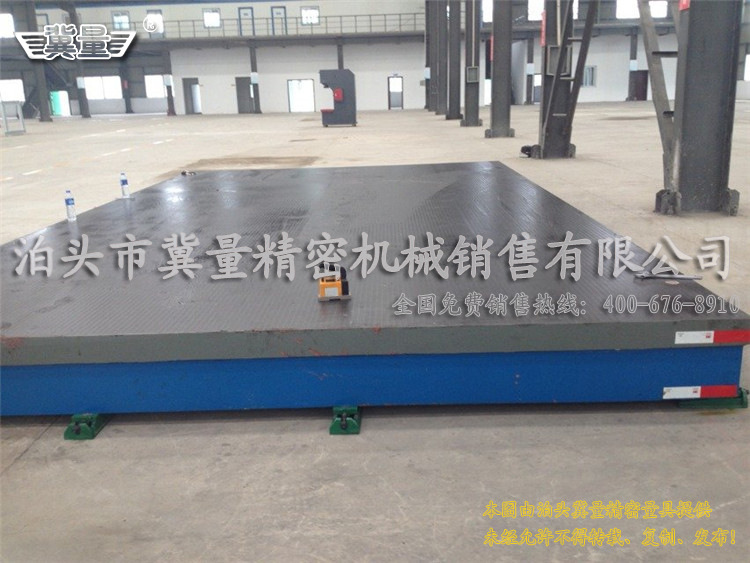 3、铸铁平板安装时将铸铁平板的各个支撑点用调整垫铁垫好、垫实,由专业技术人员将铸铁平板调整至合格精度。