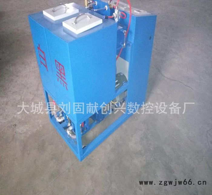 低压全自动发泡机 一、用途 GZ(Y)系列低压发泡机,是聚氨酯塑料灌注发泡的专用设备。本机设有AB两组加热器,两料罐可装200公斤料液,利用AB料泵自动上料。 二、本机采用V、H系列高精度计量泵定量输送A、B料液,具有无脉冲,连续送料,能够进行无极调节的特点,计量**调节方便。 三、本机采用三项连动:三项火线,不用零线,连动及黑白料和气体阀连动。 低压喷涂机结构原理: 本机设有左、右两支藏料箱各为28公斤独立料箱。两种不通的液料,各自从这两支料箱中分别进入两台环形活塞计量泵,启动电机,通过齿轮变速箱同时带动两台计量泵运转,两种液料各自按预先单组调好的配比同时输送到喷头。并由进入喷头内的压缩空气,混合后的液料随着压缩空气从喷头的喷嘴中喷射到件上,从而完成喷涂发泡现场施工