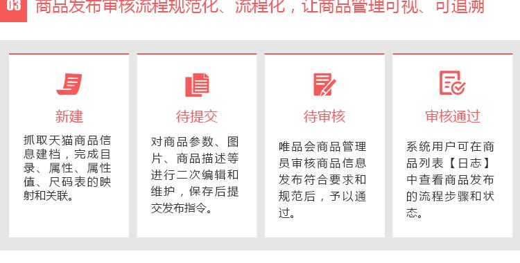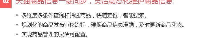 主要有七大功能模块, 操作简单易上手,商品信息直通,数据安全保护, 且能实现智能自动化, 能帮商户大大节省工作时间, 提高工作效率。
