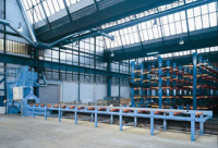 钢结构抛丸机,清理过程中由电气控制的可调速输送辊道将钢结构件或钢材送进清理机室体内抛射