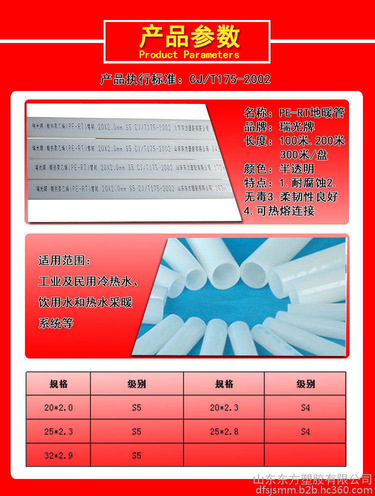 | 用途 | 家用地暖管材 |