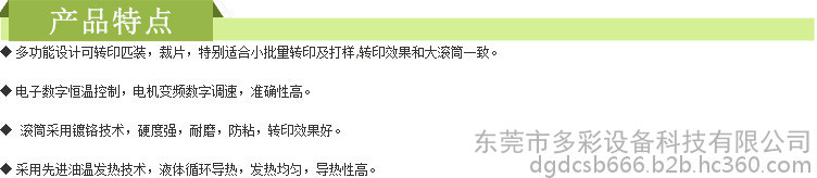 ◆ 滚筒采用镀铬技术,硬度强,耐磨,防粘,转印效果好。
