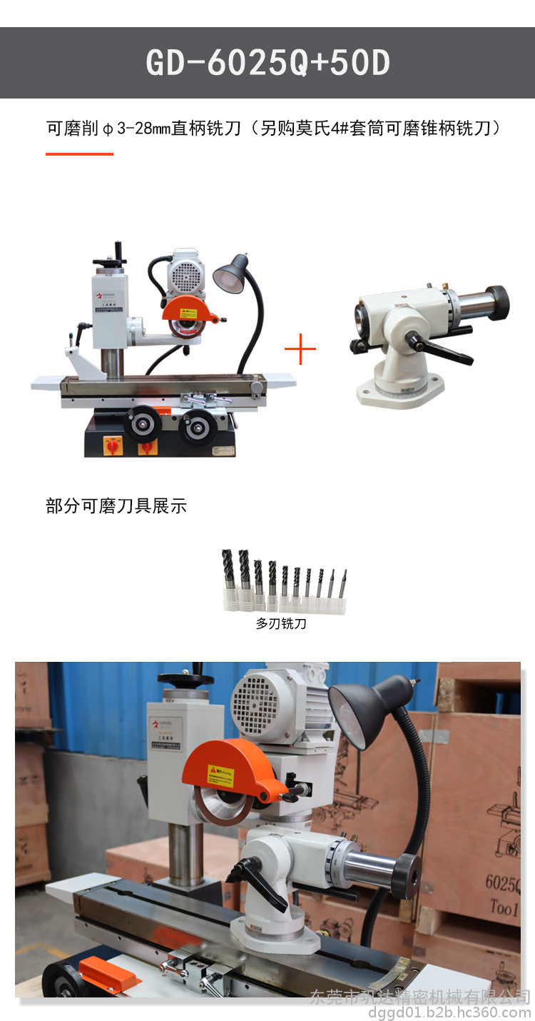 3、配合各种附件可磨削成形刀具,立铣刀,R性铣刀,铰刀,车刀,滚齿刀,钻头,丝锥,雕刻刀等