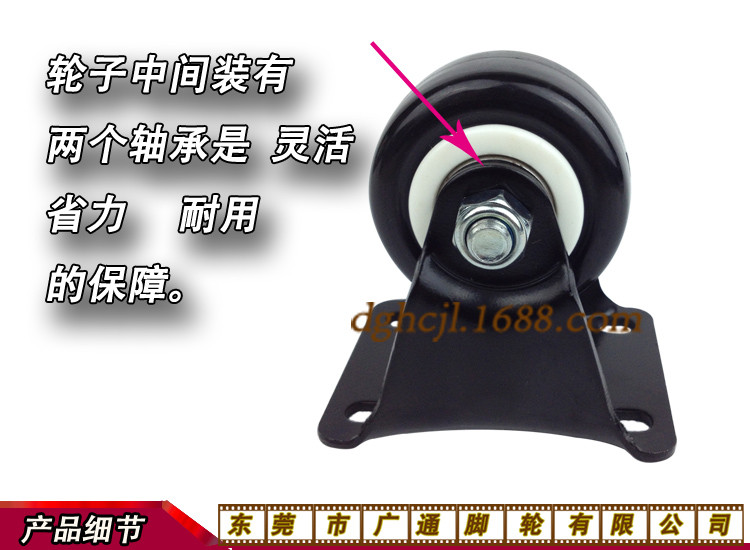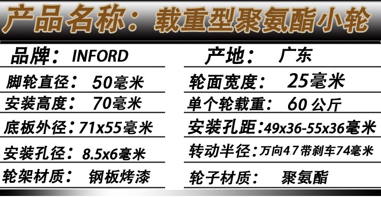 盈禾INFORD2寸黑金刚万向轮 家具家私推车转向脚轮 双轴承聚氨酯PU设备活动滚轮