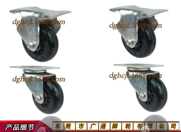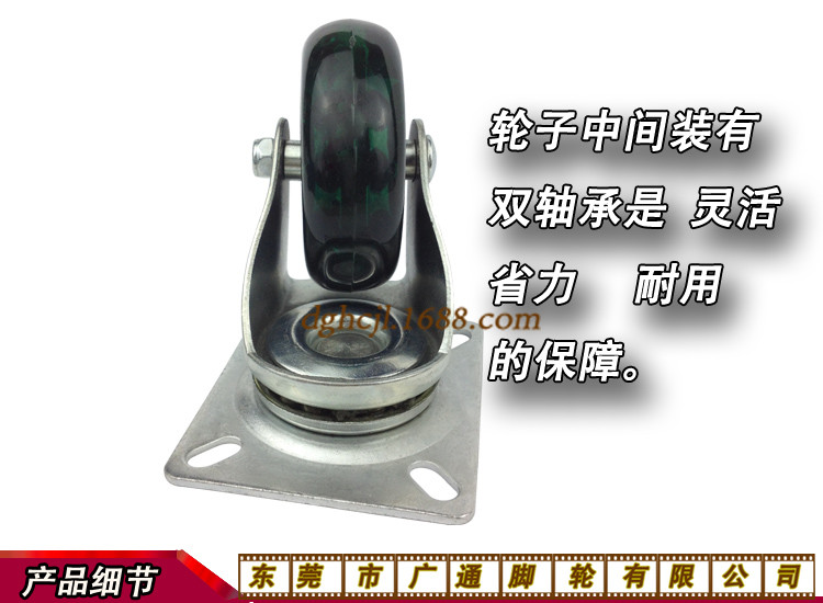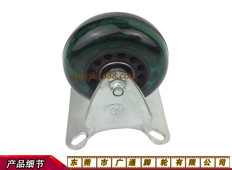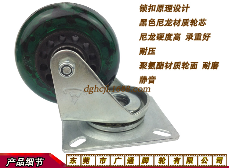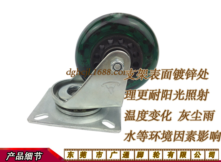 2.5寸中型透明绿色PU万向轮家具家私推车转向脚轮滑板车聚氨酯滑轮双轴承耐磨滚轮