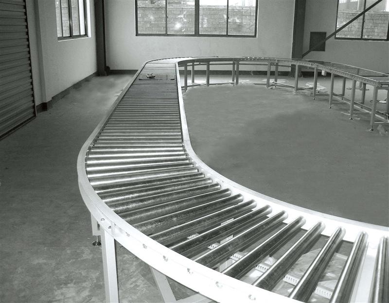 对于弯道机的锥形滚筒,其滚面宽度及锥度视货物尺寸和转弯半径而定。