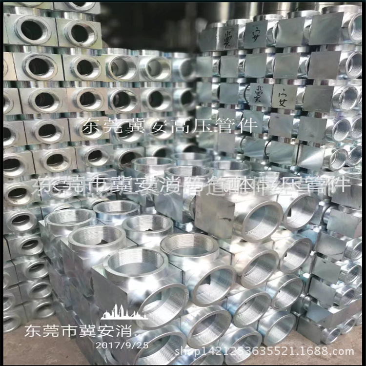东莞冀安消防气体灭火高压管件位于东莞万江区谷涌(107国道)华发物资建材市场。我厂是专业生产消防气体灭火高压管件的私营企业,主要产品有:锻钢制螺纹管件(90°直角弯头、凹凸面对焊法兰、等异径三通/四通、直通管箍、大小头、活接、内外牙钢/铜喷头、内外丝扣接头、变径直通、补芯、外丝及管堵)和热镀锌无缝钢管。高压法兰盘配套金属垫片、热镀锌高强度螺栓。材质全部使用锻钢制20#钢,确保无气孔和砂眼,内外表电镀、热镀锌处理。型号规格有DN10、DN15、DN20、DN25、DN32、DN40、DN50、DN65、DN80、DN100、DN125、DN150等,其中DN10~DN100采用锥管螺纹方式连接;DN100~DN150采用法兰连接, 连接标准包括:55° 密封管螺纹(Rc)、60°密封管螺纹(NPT)、承插焊、管子外径坡口对焊等,全系列管件均满足气体灭火系统**高工作压力(17.2Mpa),试验压力达到26Mpa,适用于高压二氧化碳气体灭火、IG541混合气体灭火、七氟丙烷气体灭火、三氟甲烷(HFC-223)、二氧化碳(CO2)气体灭火系统等各类气体灭火系统,性能参数均符合**标准,使用安全可靠。