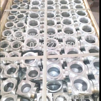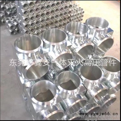 东莞冀安消防气体灭火高压管件位于东莞万江区谷涌(107国道)华发物资建材市场。我厂是专业生产消防气体灭火高压管件的私营企业,主要产品有:锻钢制螺纹管件(90°直角弯头、凹凸面对焊法兰、等异径三通/四通、直通管箍、大小头、活接、内外牙钢/铜喷头、内外丝扣接头、变径直通、补芯、外丝及管堵)和热镀锌无缝钢管。高压法兰盘配套金属垫片、热镀锌高强度螺栓。材质全部使用锻钢制20#钢,确保无气孔和砂眼,内外表电镀、热镀锌处理。型号规格有DN10、DN15、DN20、DN25、DN32、DN40、DN50、DN65、DN80、DN100、DN125、DN150等,其中DN10~DN100采用锥管螺纹方式连接;DN100~DN150采用法兰连接, 连接标准包括:55° 密封管螺纹(Rc)、60°密封管螺纹(NPT)、承插焊、管子外径坡口对焊等,全系列管件均满足气体灭火系统**高工作压力(17.2Mpa),试验压力达到26Mpa,适用于高压二氧化碳气体灭火、IG541混合气体灭火、七氟丙烷气体灭火、三氟甲烷(HFC-223)、二氧化碳(CO2)气体灭火系统等各类气体灭火系统,性能参数均符合**标准,使用安全可靠。
