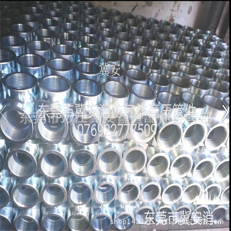 东莞冀安消防气体灭火高压管件位于东莞万江区谷涌(107国道)华发物资建材市场。我厂是专业生产消防气体灭火高压管件的私营企业,主要产品有:锻钢制螺纹管件(90°直角弯头、凹凸面对焊法兰、等异径三通/四通、直通管箍、大小头、活接、内外牙钢/铜喷头、内外丝扣接头、变径直通、补芯、外丝及管堵)和热镀锌无缝钢管。高压法兰盘配套金属垫片、热镀锌高强度螺栓。材质全部使用锻钢制20#钢,确保无气孔和砂眼,内外表电镀、热镀锌处理。型号规格有DN10、DN15、DN20、DN25、DN32、DN40、DN50、DN65、DN80、DN100、DN125、DN150等,其中DN10~DN100采用锥管螺纹方式连接;DN100~DN150采用法兰连接, 连接标准包括:55° 密封管螺纹(Rc)、60°密封管螺纹(NPT)、承插焊、管子外径坡口对焊等,全系列管件均满足气体灭火系统工作压力(17.2Mpa),试验压力达到26Mpa,适用于高压二氧化碳气体灭火、IG541混合气体灭火、七氟丙烷气体灭火、三氟甲烷(HFC-223)、二氧化碳(CO2)气体灭火系统等各类气体灭火系统,性能参数均符合**标准,使用安全可靠。