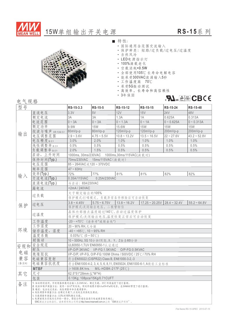 | 型号 | RS-15-5 |