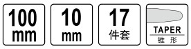 | 规格 YT-7220:100mm,17件套,YT-7221:200mm,17件套,YT-7222:100mm,10件套,YT-7223 | 200mm,14件套 |