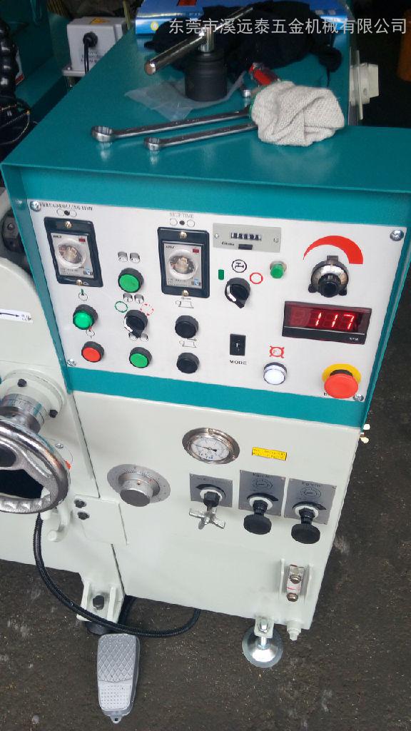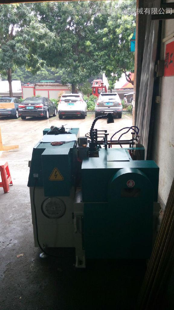 滚牙机的主轴承采用动静压轴承,其精度高、刚性好。头架主轴由直流电机驱动,在转速范围内可作无级调速,尾架采用密集滚珠形式其刚性好。机床配有角度指示器,便于对工件进行高精度滚压。