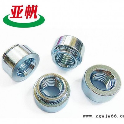 压铆螺母又叫铆螺母,自扣紧螺母,是应用于薄板或钣金上的一种螺母,外形呈圆形,一端带有压花齿及导向槽。其原理是通过压花齿压入钣金的预置孔位,一般而言预置孔的孔径略小于压铆螺母的压花齿,通过压力使压铆螺母的花齿挤入板内使导致孔的的周边产生塑性变形,变形物被挤入导向槽,从而产生锁紧的效果。压铆螺母从材质上分为碳钢压铆螺母S型,不锈钢压铆螺母CLS型,不锈铁压铆螺母SP型,分别应于不同的使用环环境。规格从通常是从M2至M12。压铆螺母目前没有统一的**标准,上面所说的“S”“CLS”“SP”指的是它型号的代号,虽能称之为标准,但行业内约定俗成定将这种标注方式及它对应的参数作为一种标准,用于机箱机柜、钣金业。