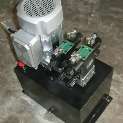 3、外接电气控制线由电气盒引入,请特别注意电机转向要与泵箭头标的方向相一致,电磁阀的控制电压必须与电磁铁标示的相一致。