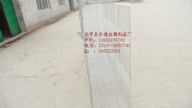 底板为:铁丝底(间距1.5cm)。前后网孔间距3cm,盖网孔距:4.5cm间距。