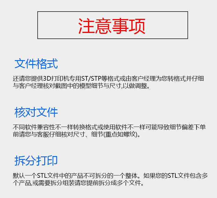| 制作范围 | 3D打印上色,小批童复模,透明打印,尼龙打印,CNC等 |