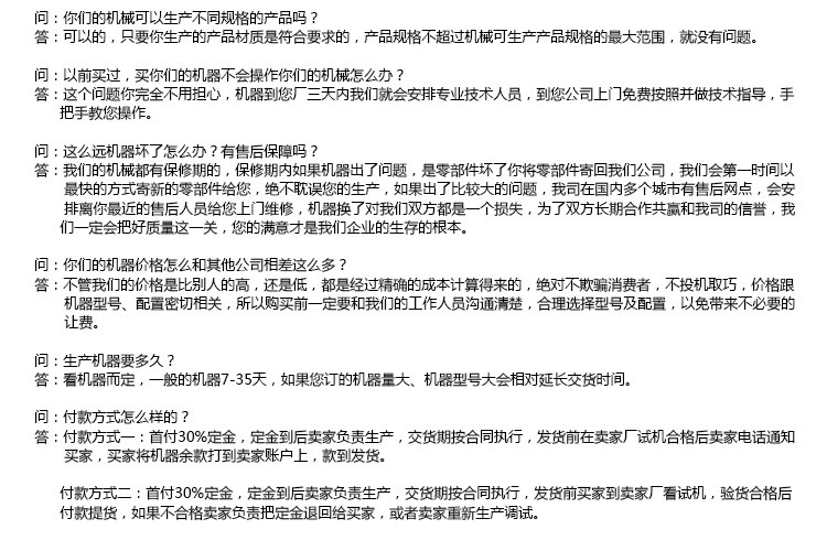 1、性价比好:该机源于投资少见效快的一种设备,投资一个月可全部回笼资金。