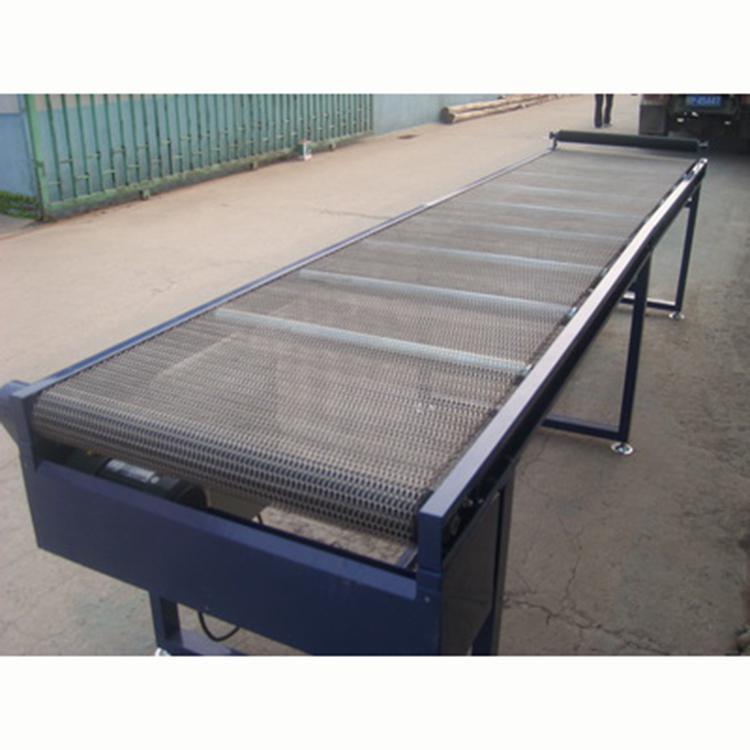 网带输送机是在一定的线路上连续输送物料的物料搬运机械,又称连续输送机,可分为网带式和网链式。输送机可进行水平、倾斜和垂直输送,也可组成空间输送线路,输送线路一般是固定的。输送机输送能力大,运距长,还可在输送过程中同时完成若干工艺操作.链板输送机的分类:1、链板式输送机的结构型式多样。链板式输送机一般可按下述分类:2、按输送机的安装形式可分为固定式和移动式;3、按输送机的布置形式可分为水平型、水平-倾斜型、倾斜型、倾斜-水平型、水平-倾斜-水平型等;4、按牵引构件的结构型式可分为套筒滚子链式、冲压链式、铸造链式、环链式及可拆链式等;5、按牵引链的数量可分为单链式和双链式;6、按底板的结构型式可分为鳞板式(有挡边波浪型,无挡边波浪型,有挡边深型等)和平板式(有挡边平型和无挡边平型等);7、按输送机的运行特征可分为连续式和脉动式;58、按驱动方式可分为电力机械驱动式及液力驱动式。
