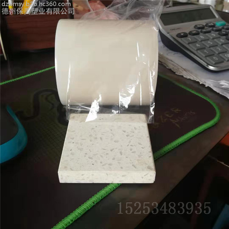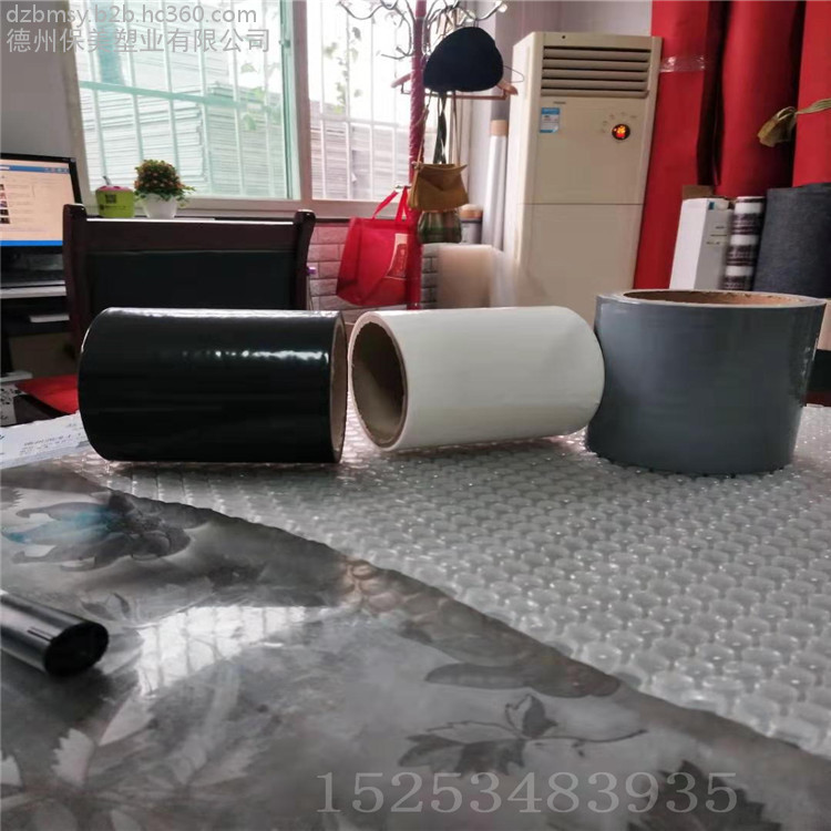 保美塑业有限公司生产的保护膜主要是以聚乙烯塑料薄膜为基材,以交联型聚丙烯酸树脂为胶粘剂,再添加几种特殊助剂,配制调试而成。胶水为乳白色,柔软、持粘性能好,对各种板材保护使用范围较为广阔,不同材料表面的保护可选择不同的产品型号粘力和规格。