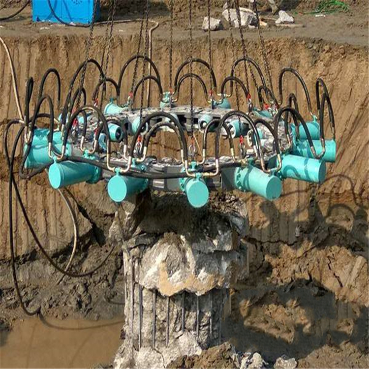 极大地减轻了工人的劳动强度,提高了工作效率。结合混凝土破桩机破拆方法,截断一根桩头时间甚至只需要几分钟。通过动力源给截桩机多个油缸提供压力,油缸直接驱动钎杆,同时挤压桩身,使桩头截除。破桩机施工过程中,操作简单,高效率,低噪音,低成本,适用于桩 群施工工程中。