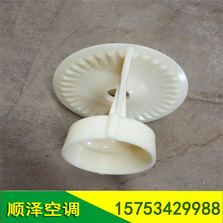 三溅式喷头 反射三型喷头我公司生产各种冷却塔喷溅装置ABS材质三溅式喷头 反射三型喷头,具有与配水管相连的承插式(直径48mm、直径60mm规格供选择)接口,承插接口采用钻尾丝固定,在承插接口的下部还依次同轴间隔设置有外径依次变小的大溅水盘、小溅水盘和锥形辟水头;并且由至少两支圆周排列立式设置的连杆固定在承插接口上,在大溅水盘和小溅水盘上还分别设置有与锥形管嘴同轴且与锥形管嘴下口内径相比内径依次变小的大漏水孔和小漏水孔,大溅水盘和小溅水盘为弧面朝上的半球形,锥形辟水头为锥角向上的锥形。冷却塔雾化喷头。