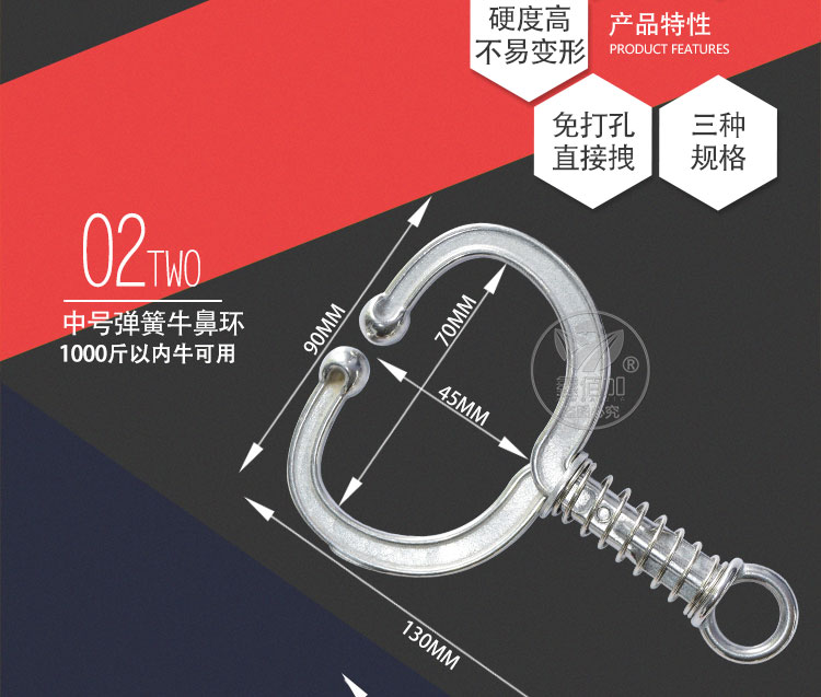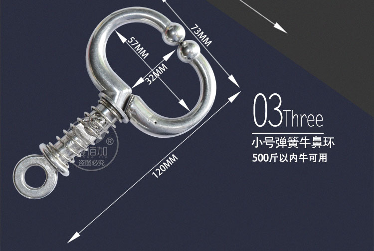 不锈钢弹簧牛鼻圈采用不锈钢材质,耐腐蚀,硬度高,拖拽不变