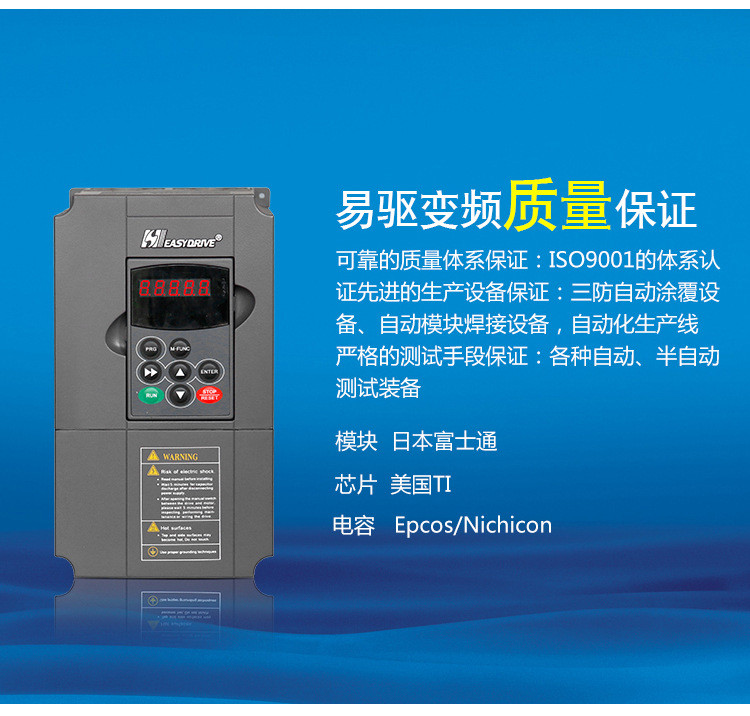 深圳市易驱电气有限公司,成立于2004年,是深圳市双软企业、高新技术企业。专注于变频调速系统及其他电力电子传动技术的研发、生产和销售。依托于高性能矢量变频控制技术、电力电子驱动技术等核心技术平台及强大的营销网络平台,产品荣获“质量可信产品”称号,远销50多个*家及地区,并连续六年荣获 “低压变频器**品牌”。2019年,易驱电气正式成为施耐德电气旗下合资公司。