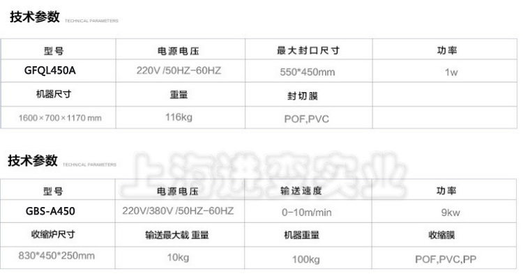 6根据薄膜的材质和厚度,设定封切时间,一般为1.5秒左右;当封切时间结束后,压框将自动弹起,封切输送带将物品往收缩炉内运送,当封切后的物品刚好全部进入收缩输送线内时,封切输送线刚好停止,此为最佳输送时间。