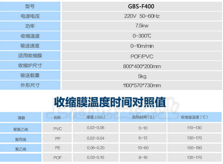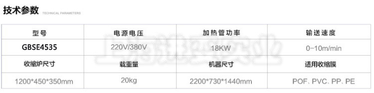 10包装结束后,应先关闭加热开关,并让输送电机与热风电机继续运行15分钟,然后再切断整个电源,这样可延长加热管等部件的使用寿命。