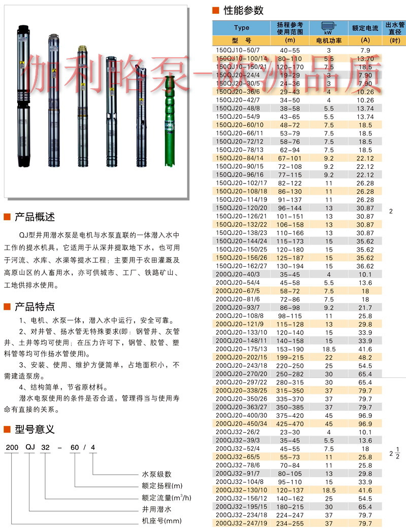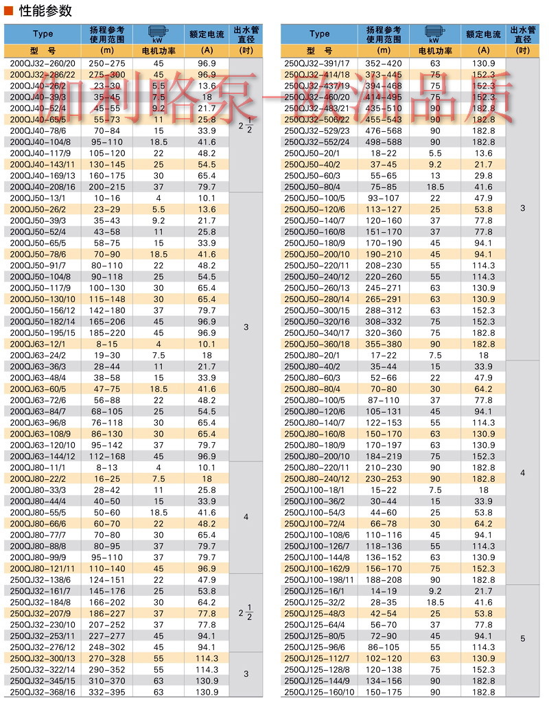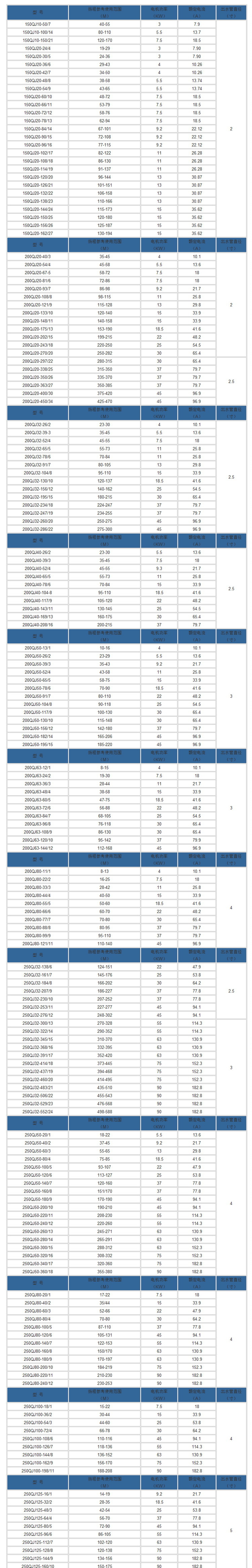 【QJ型井用潜水泵(深井泵)】性能参数: