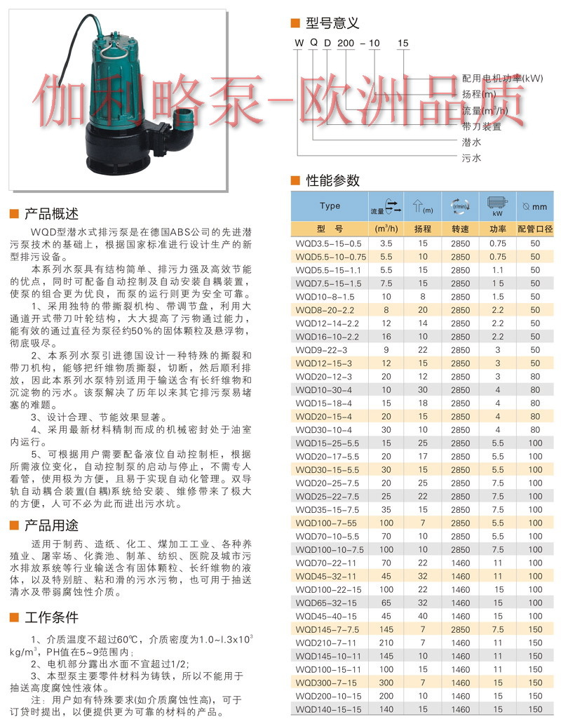 潜水排污泵WQ系列,伽利略Galileo,# | 立式排污泵WL系列,伽利略Galileo,# | 液下排污泵YW系列,伽利略Galileo,# | 直联式自吸无堵塞排污泵ZWL系列,伽.. |