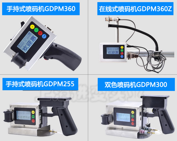 | 规格 | 手持式喷码机GDPM360,在线式喷码机GDPM360Z,手持式喷码机GDPM255,双色手持式喷码机GDPM300,油墨移印打码机 |
