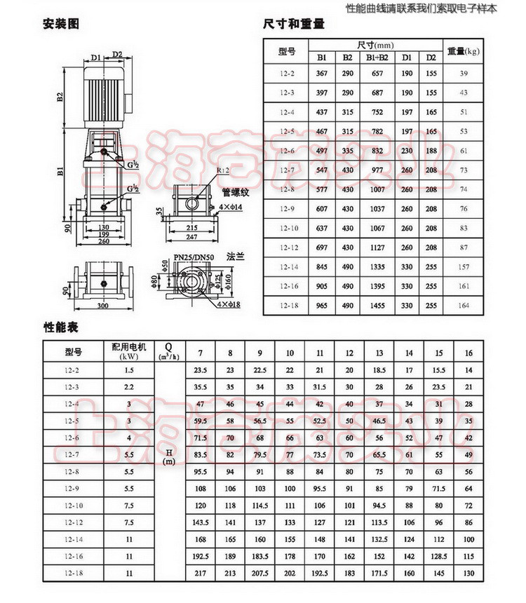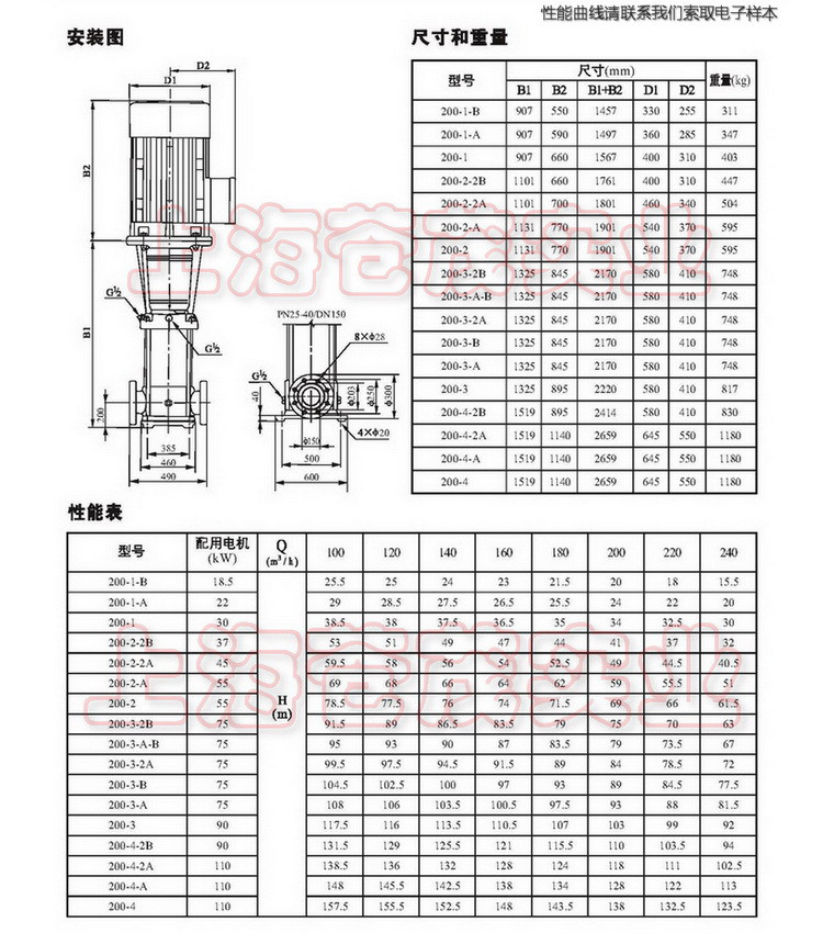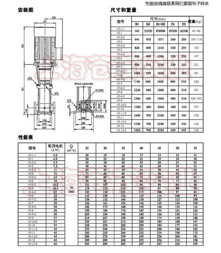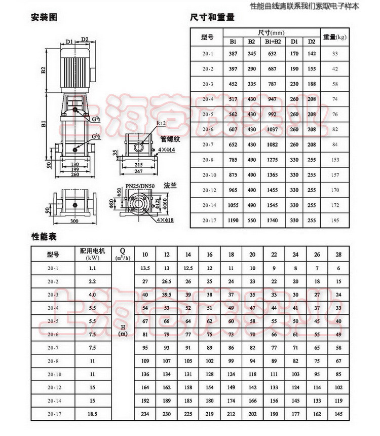 注:在轻型多级泵未充满液体前,不要起动泵。