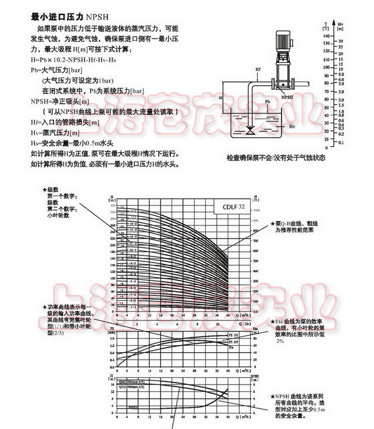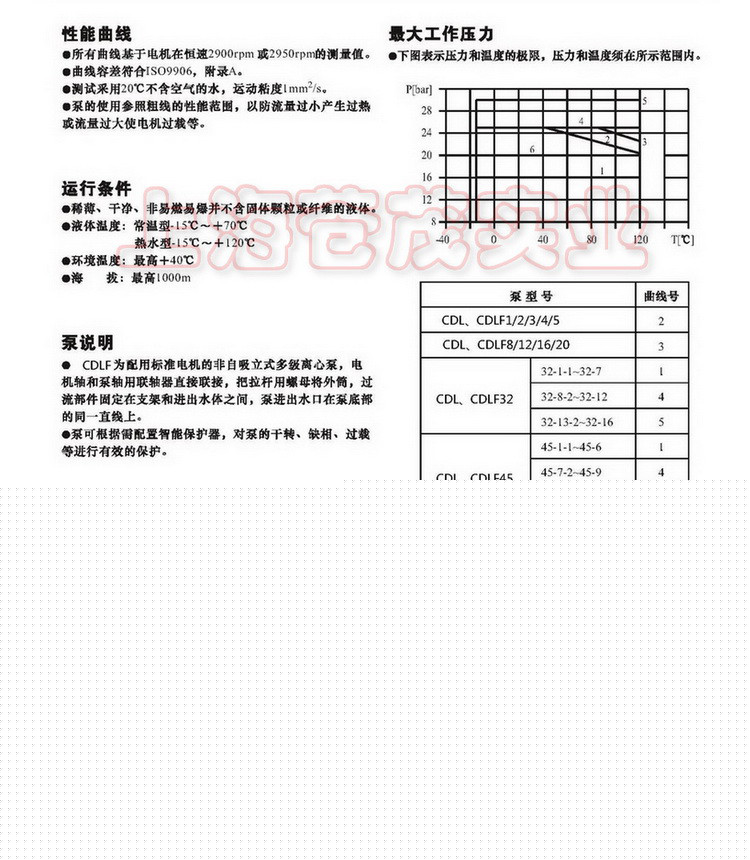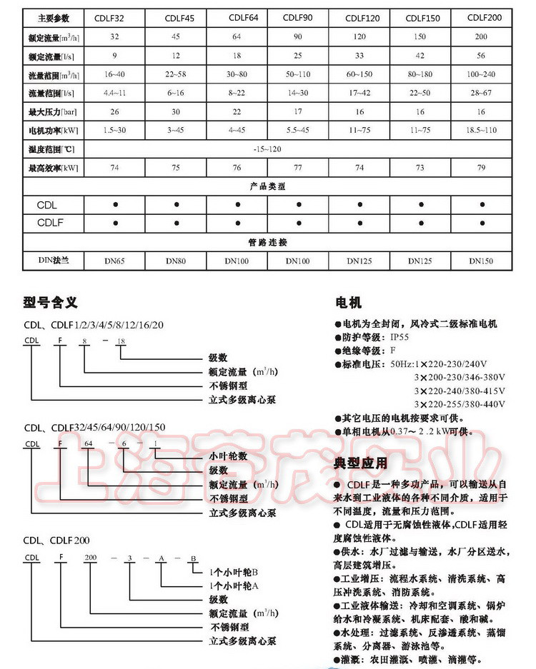 【CDLF型立式不锈钢多级泵】性能范围: