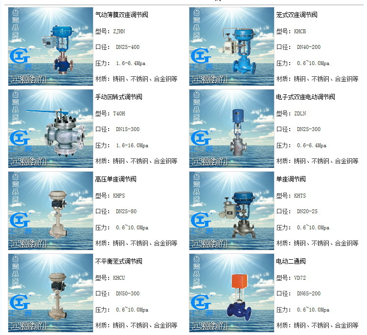 产品概述: 本系列产品公称通径由20至200mm,公称压力有1.0、1.6、4.0、6.4MPa,使用温度范围由-250℃~450℃,接受信号为0~10mA.DC或4~20mA.DC。电动双座调节阀适用于压差较大场合。按阀内件密封部分材质分又有金属-金属和非金属-金属密封两种,后者阀关闭时泄漏量可达到Ⅵ级(零泄漏)标准。按填料不同可分为一般填料密封和波纹管密封两种,前者用于一般场合,而后者用于不允许外漏的特殊场合,流量特性为线性或等百分比。配用不同的执行机构可分为普通型和电子型两种。多种多样品种规格可供选择。 产品特点: 零件资料: