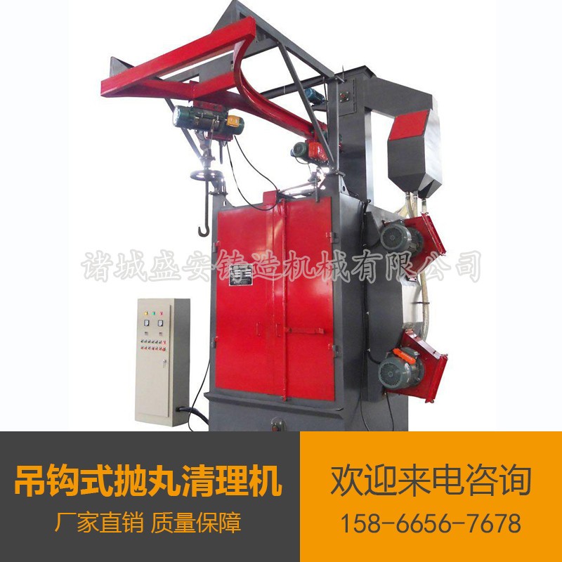 吊钩式抛丸清理机是利用高速回转的叶轮将弹丸抛向滚筒内连续翻转的工件上,从而达到清理工件的目的,属于铸造机械范围。它适用于各行业中的15公斤以下的铸锻件的清砂、除锈、去氧化皮和表面强化。由于本机带有独特的集尘装置,故安装地点不受车间通风管路的限制,且卫生条件好,本机设有自动停机装置,操作简便。