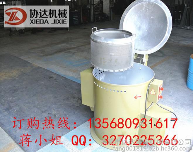 在离心力及热风的双重作用下迅速地脱去工 作表面所附的水份,并给予烘干,设有脚踏式 煞车器。解决了因脱水不及时而影响产品质量的问题。脱水、脱油、烘干同步进 行,无水渍及污点出现 ,可避免工件氧化或生锈,提高成品光泽度及质量