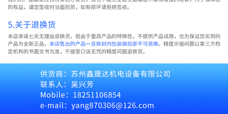 苏州鑫晟达机电设备有限公司代理经销国内外品牌测量工具,青海青量集团有限公司品牌授权 ,主要产品类别:外径千分尺、三点内径千分尺,仪器仪表、量具刃具、卡尺、量表、百分表、环规、SPC接线口、量仪等。在消费者当中享有很高的品牌知名高度,公司与多家零售商和代理商建立了长期稳定的合作关系。本公司经销量具上千余种,产品齐全价格合理。热诚欢迎各界朋友考察、洽谈业务! 联系人: 吴小姐 18251106854