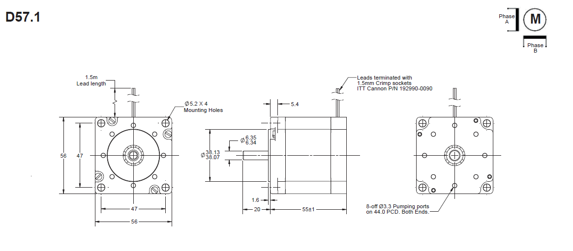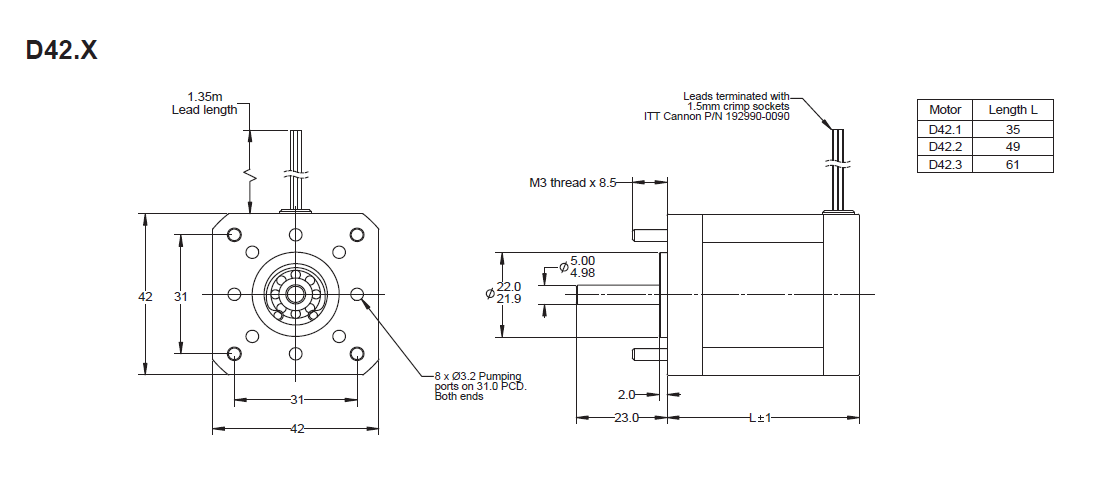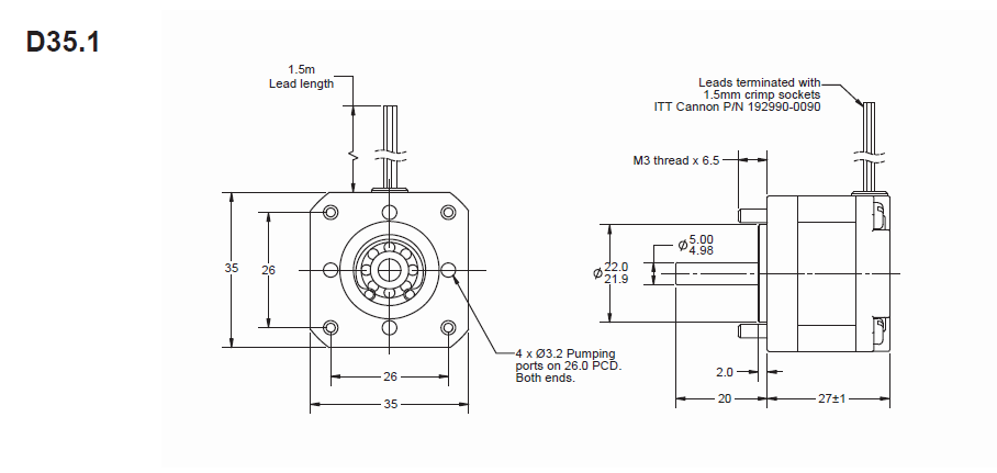步距角:1.8o 步距误差:5%电缆长度:1.5米 可定制双出轴,陶瓷轴承 配套真空减速机 | ||||||||