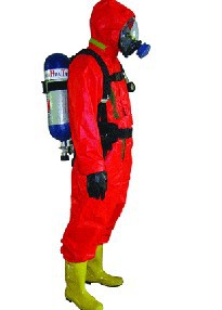 全密封防化服,重型防化服RFH-02是消防员进入化学危险物品或腐蚀性物品火灾或事故现场,以及有毒、有害气体或事故现场,寻找火源或事故点,抢救遇难人员,进行灭火战斗和抢险救援时穿着的防护服装。