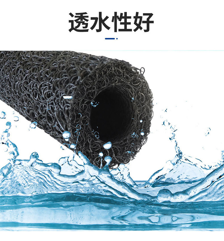 塑料盲沟(速排龙)是由塑料芯体外包裹滤布组式。塑料芯体是以热可塑性合成树脂为主要原料,经过改性。在热熔状态下,通过喷咀挤压出细的塑料丝条,再通过成型装置将挤出的塑料丝在结点上熔接,形成三维立体网状结构。