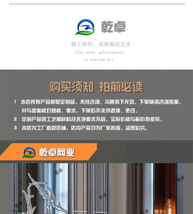 乾卓装饰网 网帘 金属网 不锈钢丝网 吊顶隔断屏风帘网 绳杆帘网 合股编织装饰网