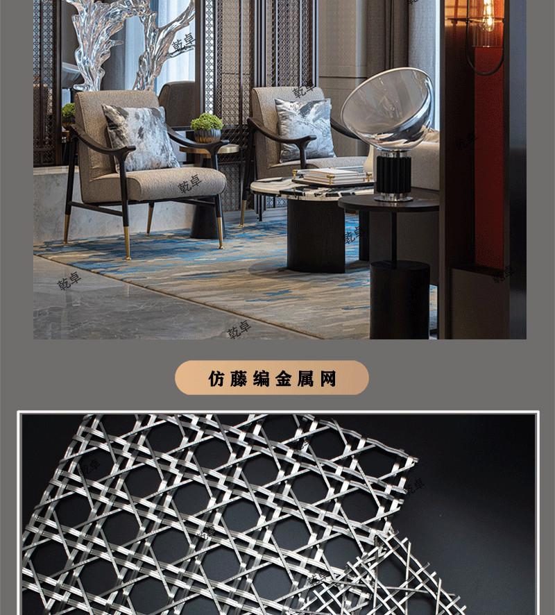 花式编织金属网格,香槟金隔断屏风网帘,古铜拉丝铁丝网,背景幕墙玄关隔断,工业风菱...
